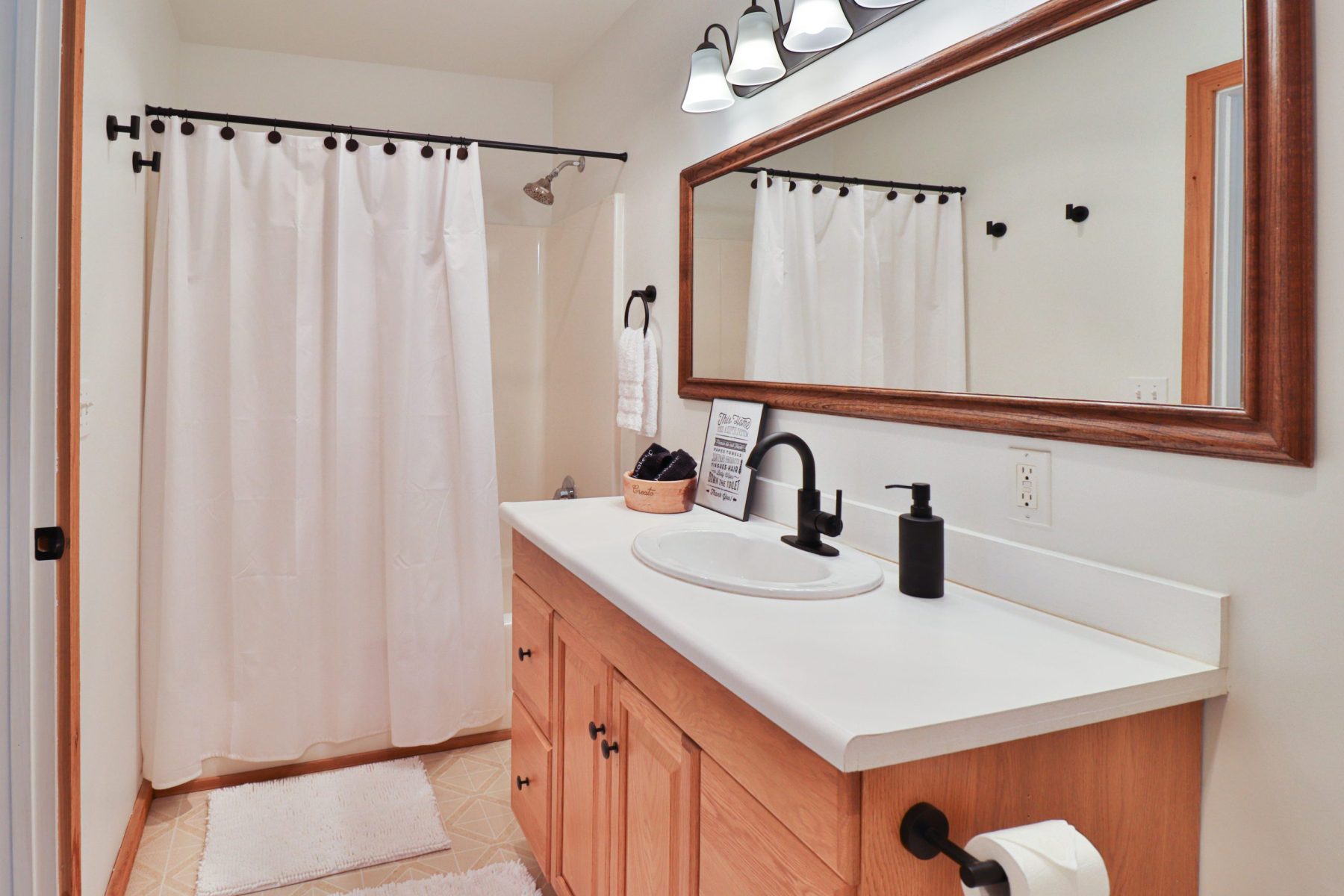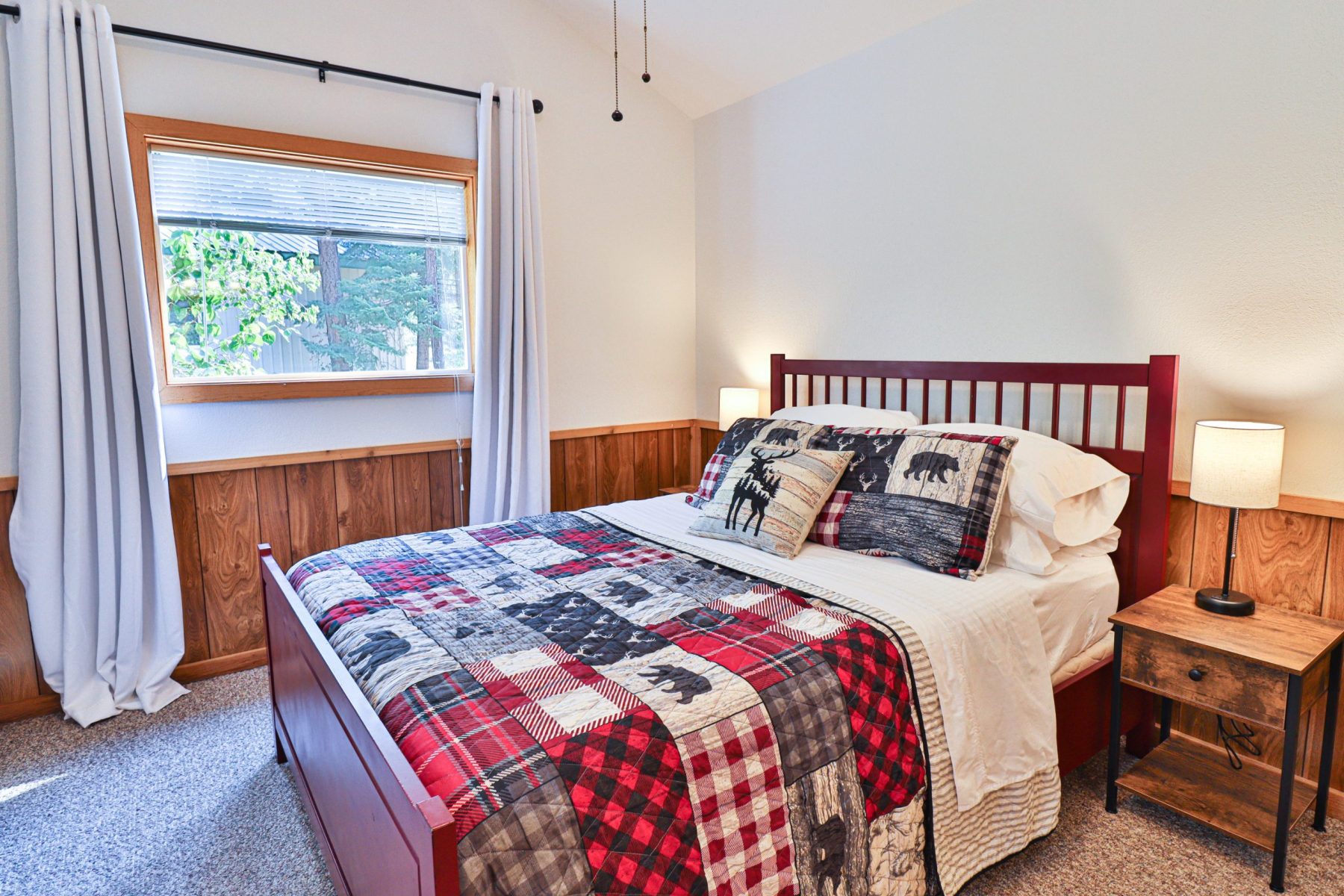 - Bedroom 1: queen bed, en-suite full bathroom with bathtub/shower combo